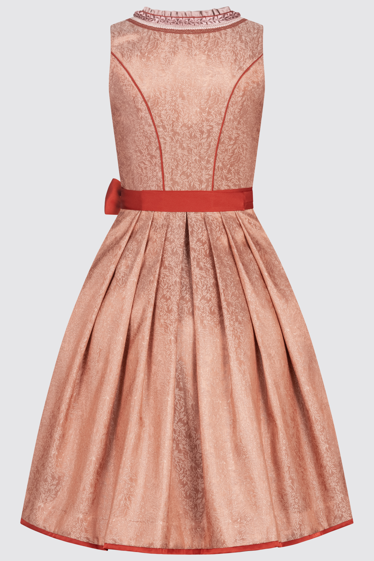In Kürze: Dirndl midi "Amarena, Farbe: rot, Ornamentmuster, Eingrifftaschen, Reißverschluss, Balkonettausschnitt, Spitzenschürze
