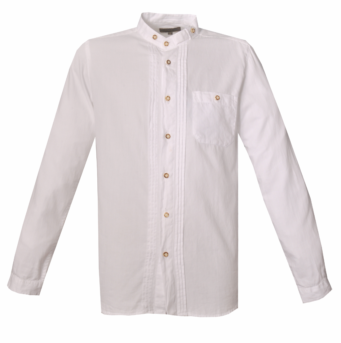 in Kürze: Trachtenhemd, Langarm, Farbe: weiß, Biesen, Stehkragen, Knöpfe in Hornoptik