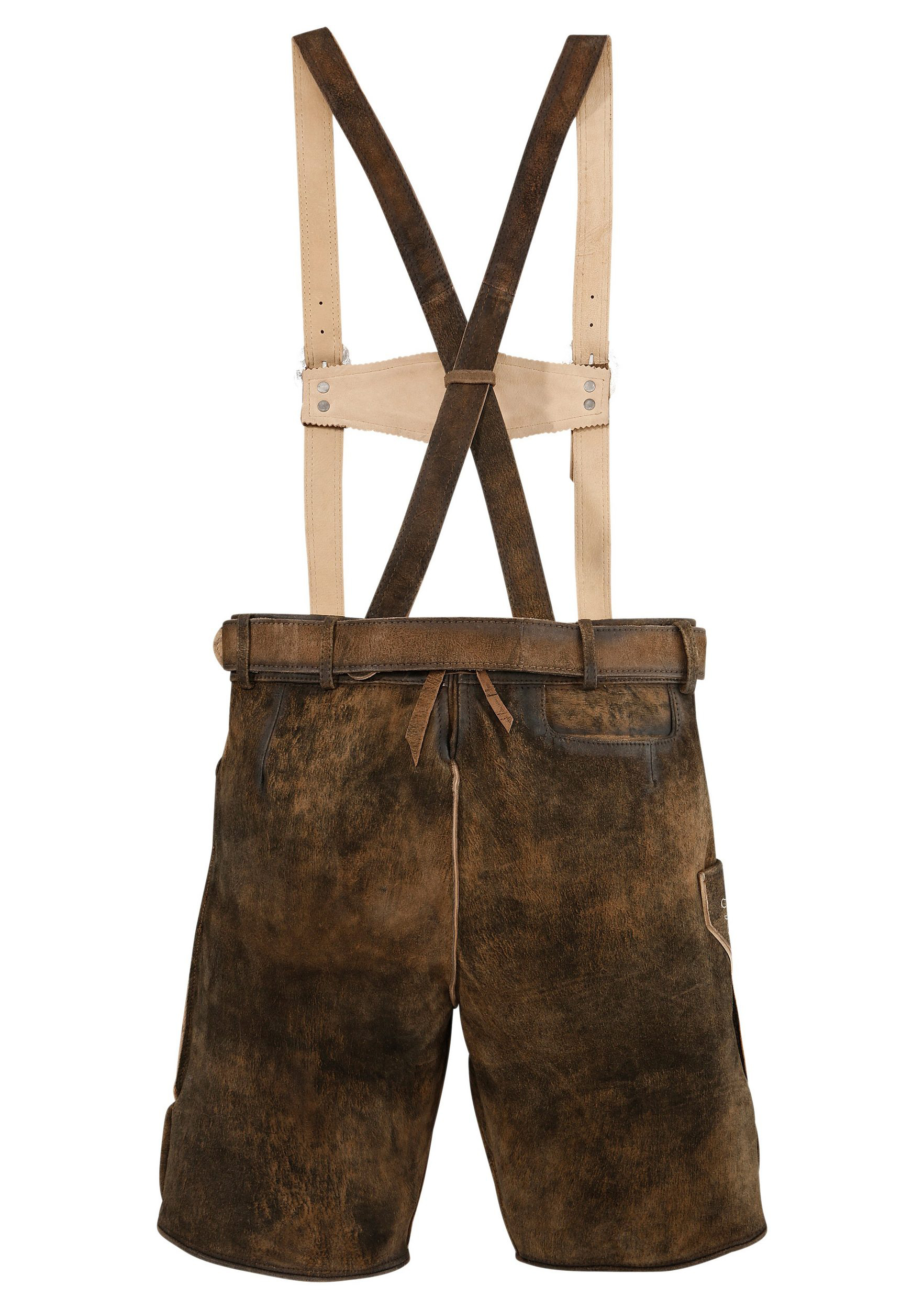 Weiterführende Links zu "Lederhose kurz Carl antik bistre brown mit Gürtel und Träger Marjo"